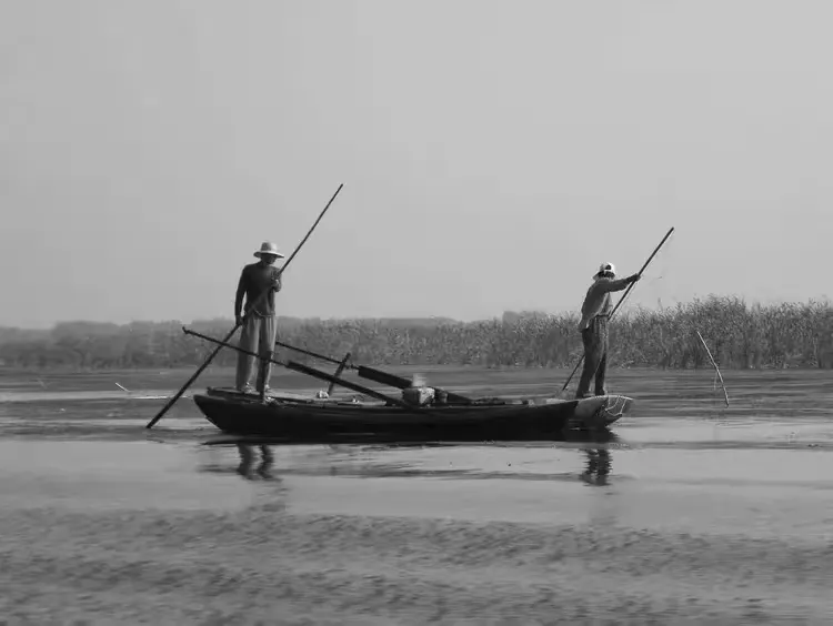 从九龙河口开始,我们用肩头撑船,感到好吃力,加上这条河径吹翻风,船要上,风吹下,我们费了九牛二虎之力硬撑,总算到了严村,实在撑不动了,只好去村子里请纤夫,纤夫一拉纤,我们的肩头马上就轻松了。