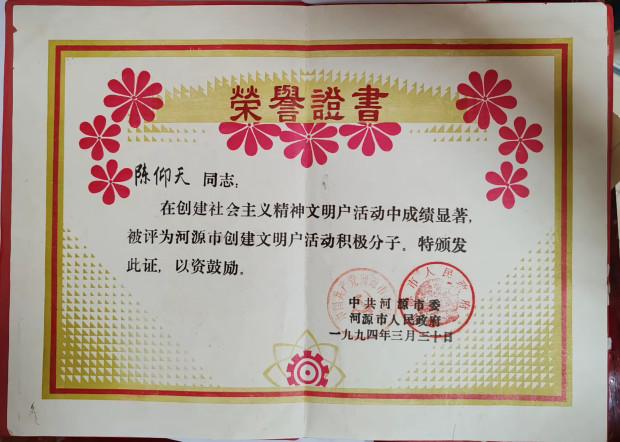 后先被评为“河源市社会主义精神文化先进分子”、